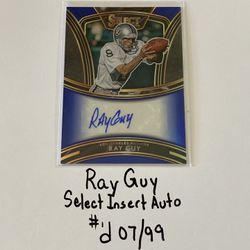 Ray Guy Los Angeles Raiders Hall of Fame Punter Select Short Print Insert Autograph Card. #’d 07/99. $70San Jose, CA