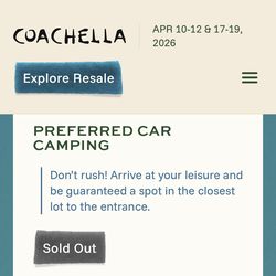 Coachella W1 preferred car camping pass$750San Jose, CA