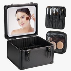 Makeup Case with Lighted Mirror, Travel Makeup Bag Organizer with 3CCT LED Mirror, Cosmetic Bag for Women with Adjustable Divider, Makeup Storage Box $30City Of Industry, CA