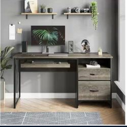 55 in. Desk with 2 Drawers Industrial Style Office Desk with Keyboard Tray Dark Retro Grey Oak$190Fontana, CA