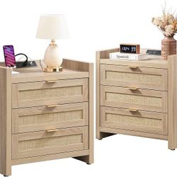 Rattan Nightstands Set of 2 Bedside Table - Larger Night Stand with Type-C Charging Station, 3 Drawers Storage, Boho Night Stands End Table for Bedroo$150Arcadia, CA