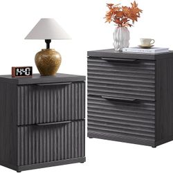Fluted Night Stand Set 2 - Modern Nightstand with 2 Large Drawers, 22 Inch Wide Bedside Table for Bedroom, Mid Century Bed Side Tables Bedroom, Dark G$125Arcadia, CA
