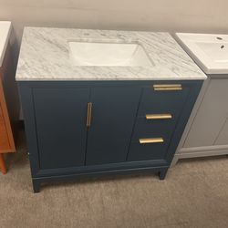 36” Blue Solid Wood Bathroom Vanity with Marble Top (V1228)$600Ontario, CA