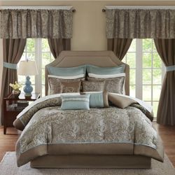 Madison Park Essentials Brystol 24 Piece Room in a Bag Faux Silk Comforter Jacquard Paisley Design Matching Curtains Down Alternative Hypoallergenic A$99Upland, CA