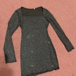 New large green sheer mesh rhinestone mini stretchy dress long sleeve cocktail $12Upland, CA