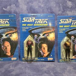 Star Trek TNG Picard Riker Worf Action Figures Galoob 1988 NOC Lot Of 3$25Diamond Bar, CA