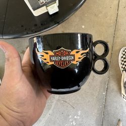 Harley Davidson Motorcycle Coffee Mug Bar Shield Logo Black & Orange Wide Mouth$10Riverside, CA