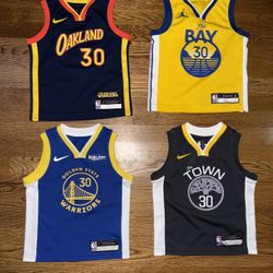 Four Steph Curry #30 Warriors Jerseys Kids Small (Dark blue, yellow, blue & gray)$50Alhambra, CA