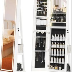 White Mirror Jewelry Cabinet Standing, Large Storage Jewelry Armoire, Full-Length Frameless Mirror w$120La Habra Heights, CA