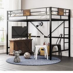 Metal Twin Loft Bed Frame for Juniors and Adults, Space-Saving, Noise Free, with Stairs & Full-Length Guardrail, Black Size Twin Loft Mate$110Ontario, CA