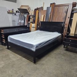 4pc QUEEN bedroom set black includes queen bed, dresser, mirror and nightstand. $599Riverside, CA