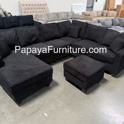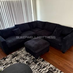 New! Jumbo Corduroy Sectional, Black Corduroy Sectional, Plush Sectional, Soft Corduroy Couch, Black couch, Black Sofa, Black Sectional And Ottoman$529Corona, CA