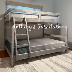 Full/Full Gray Wooden Bunk bed w. Ortho Mattresses Included $799Perris, CA