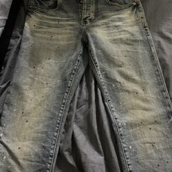 Purple Brand Slim Fit Blue Distressed Paint Splatter Men Denim Jeans Size 33$160Fontana, CA