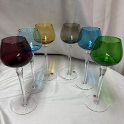Vintage MCM Set Of 6 Multicolored Hock Wine Glasses Made In Italy Elegant $30Rowland Heights, CA