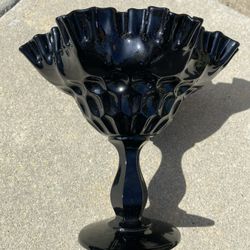 Vintage Fenton Black Glass Pedestal Compote With Ruffed Edge Candy Dish Bowl$24Buena Park, CA