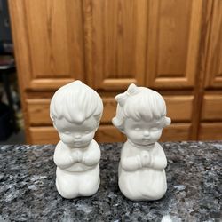 Vintage Ceramic Praying Boy And Girl White With Gold Accents Pair of Salt And Pepper Shakers. Preowned. $20Artesia, CA
