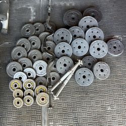 Standard weight plates 153lbs plus dumbbell handles and curl bar$100Moreno Valley, CA