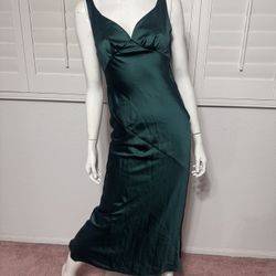 New small green satin silky long evening dress cocktail formal open back $20Upland, CA