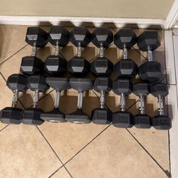 Rubber hex dumbbells 15-50 pairs weights 480lbs Total$480Moreno Valley, CA
