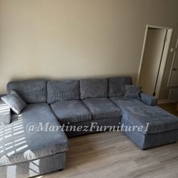 NEW Sectional Sofa Couch With Ottoman Grey, Dark Grey, Sage Green Or Ivory Corduroy $490Norwalk, CA