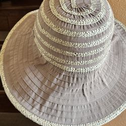 Betmar Lightweight wide brim sun hat in taupe with contrasting braided trim. Soft, packable fabric offers comfortable sun protection. Neutral taupe pa$10Cty Of Cmmrce, CA