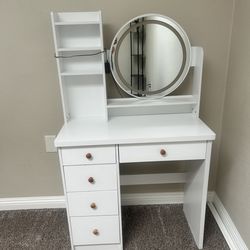 44" W x 55" H Vanity Desk Mirror with Light, Makeup Vanities Large Wave Fluted Dressing Table & 2 Draw$140Santa Ana, CA