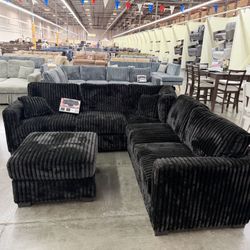 NEW L Shape Corner Sectional Sofa and Ottoman Set Couch Dark Grey Fabric Ashley Style Discount Furniture SALE Black Green Gray Clearance Many Color$479Corona, CA