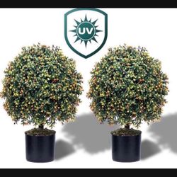 Set of 2-Pre-Potted Artificial Boxwood, 24'' Anti-UV Engineering Grade Material, Decorative Topiary Ball for Indoor Outdoor (Green with Orange Fruits)$75Rialto, CA