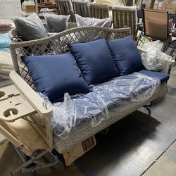 Assembled New Heavy Duty 900 LBS Porch Swing Chair 3-Person Outdoor Rattan Patio Swing Lounge w/Cup-$120Downey, CA