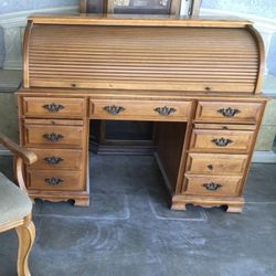 Vintage Solid Oak Wood Secretary Desk With Roll Top, Storage, Brown$200West Covina, CA