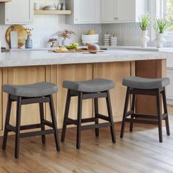 Bar Stools Set of 3, Barstools with Sturdy Wood Legs, Saddle Seat Counter Height Bar Stools$99Irvine, CA