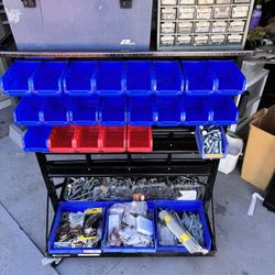 Parts Bin Rolling Rack With Bins And Heavy Duty Nuts & Bolts $250Vallejo, CA
