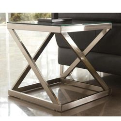 Ashley Furniture Coylin brushed metal glass table coffee cocktail side table