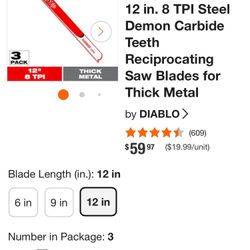 Diablo Sawzall Blades with Carbide Teeth$100Woodland, CA