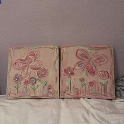 Pink Butterfly/garden Paintings Set Of 2$17Woodland, CA