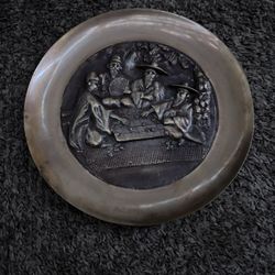 Antique Chinese Bronze & Brass Figural Men Play w/ Board Game Relief Wall Plate$60Spanish Flat, CA