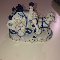 Porcelain Vintage Blue White Colonial Couple With Horse Drawn Carriage$25Spanish Flat, CA