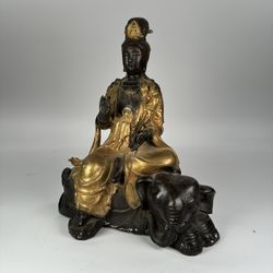 Antique Chinese Parcel Gilt Bronze Figure Guanyin Seated Buddhistic Elephant 20C$500Concord, CA