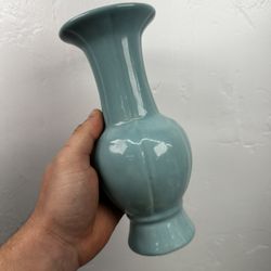 Chinese Porcelain Song Style Ru Kiln Sky Blue Crackle Glaze Gu Shaped Vase$50Concord, CA
