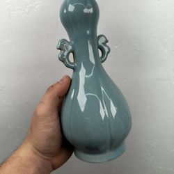 Chinese Porcelain Song Style Ru Kiln Sky Blue Crackle Glaze Double Eared Vase$40Concord, CA