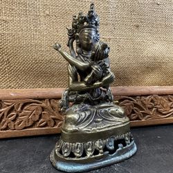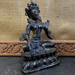 Antique Chinese Black Bronze White Tara Goddess Flower Buddha Seat Lotus Statue$225Concord, CA