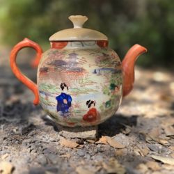 🌸 Vintage Hand-Painted Japanese Teapot – Geisha & Landscape Scene