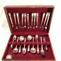Antique over 100 years old silver plate, serving flatware set with woodcase.$110Vacaville, CA