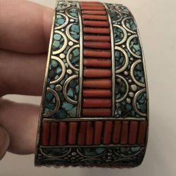 Coral ,turquoise ,gemstone handmade 925 sterling silver Tibetan cuff bracelet spring clasp 7.5$120Suisun City, CA