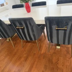 6 Grey Velvet Dining Chairs With Gold Legs And Handles$700Sacramento, CA