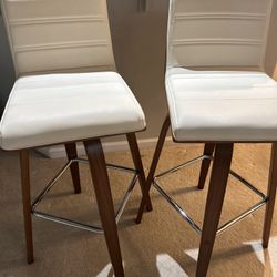 Pair of Armen Living Vienna Mid-Century Modern Swivel Bar Stool, featuring walnut wood legs and cream faux leather upholstery $40Sonoma, CA