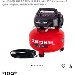 Craftsman 20 Gallon Air Compressor Rarely Used With 50 Ft Hose$325Vacaville, CA