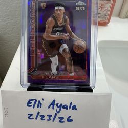 2025-26 Topps Chrome Sapphire Jeremiah Fears Purple Refractor 08/75 Pelicans$100Pittsburg, CA
