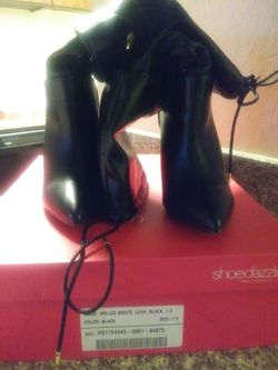 Size 7.5, Black heeled calf boots$30Vallejo, CA